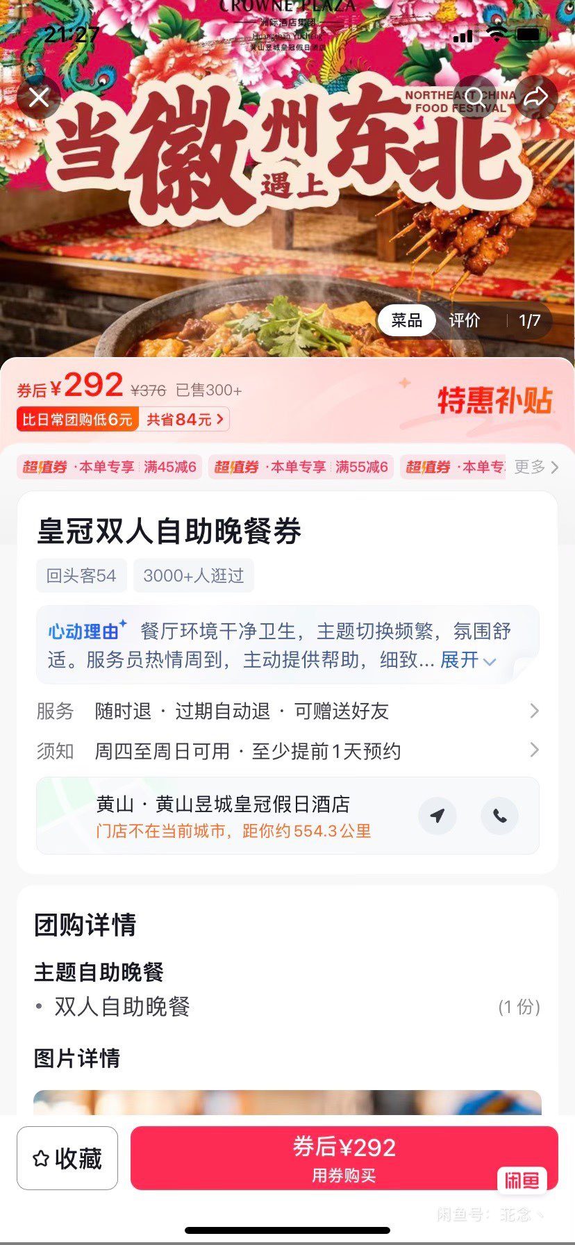 出2张皇冠假日酒店自助晚餐券