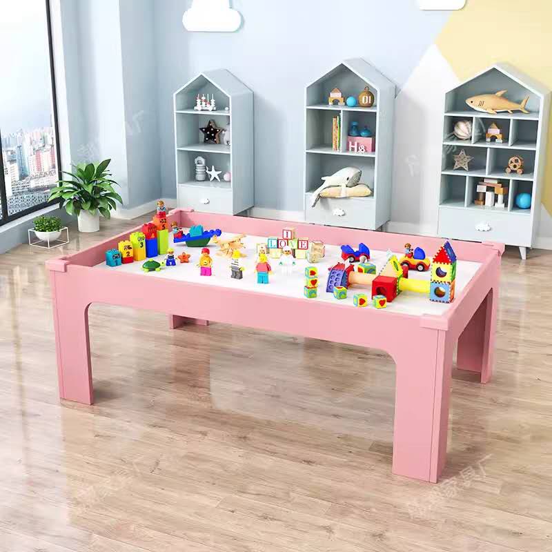 新款桌子可两用,可以当游戏桌,乐高桌,防止乐高小配件掉落,还配有桌板,盖上秒变成小桌子,也可当茶几用,粉红色,里面配有乐高底板。长105cm,高45cm,宽55cm。