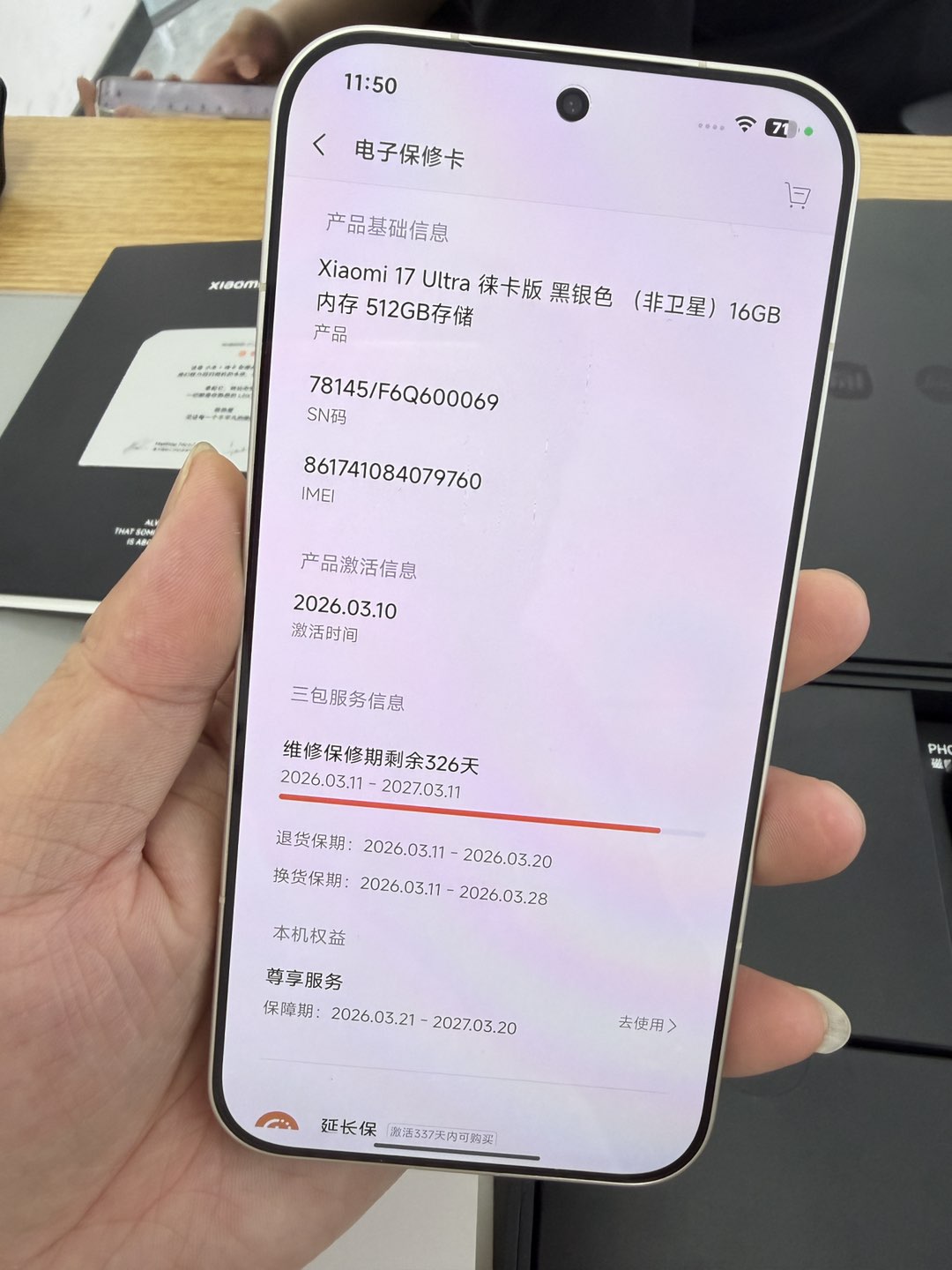 小米17Ultra 黑银 16G+512G 3月11号激活的 全套都在 充电器都没拆 没有任何磕碰划痕 和新机没啥区别