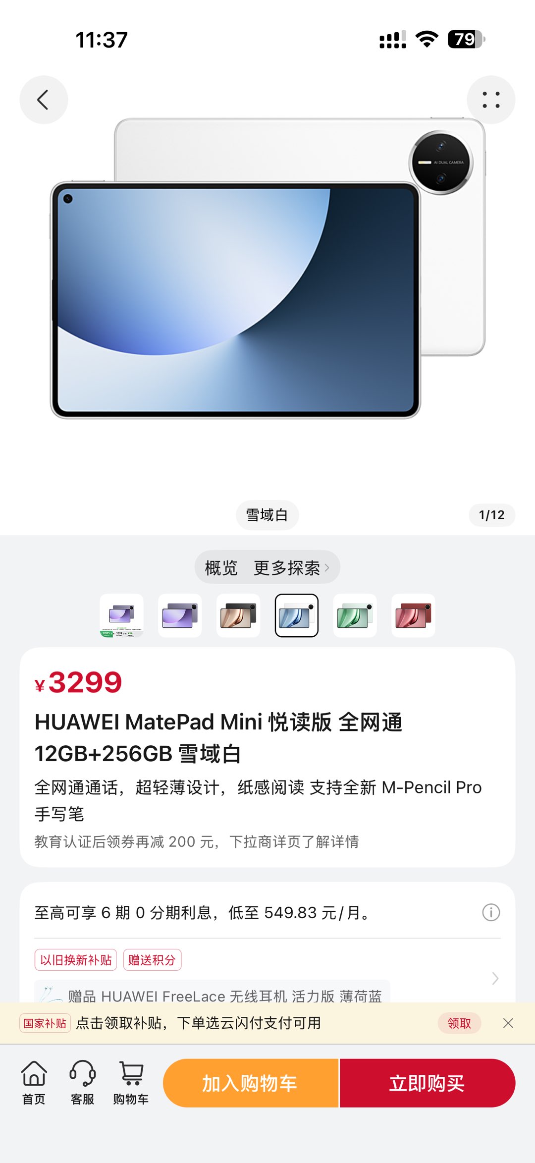 华为MatePad Mini阅读版 8.8寸屏幕 白色 12G+256G 3月12号激活的 全套都在 成色非常好 可以插卡可以打电话